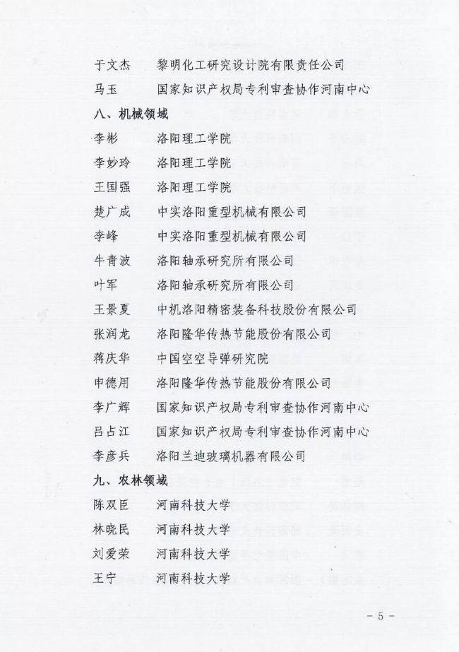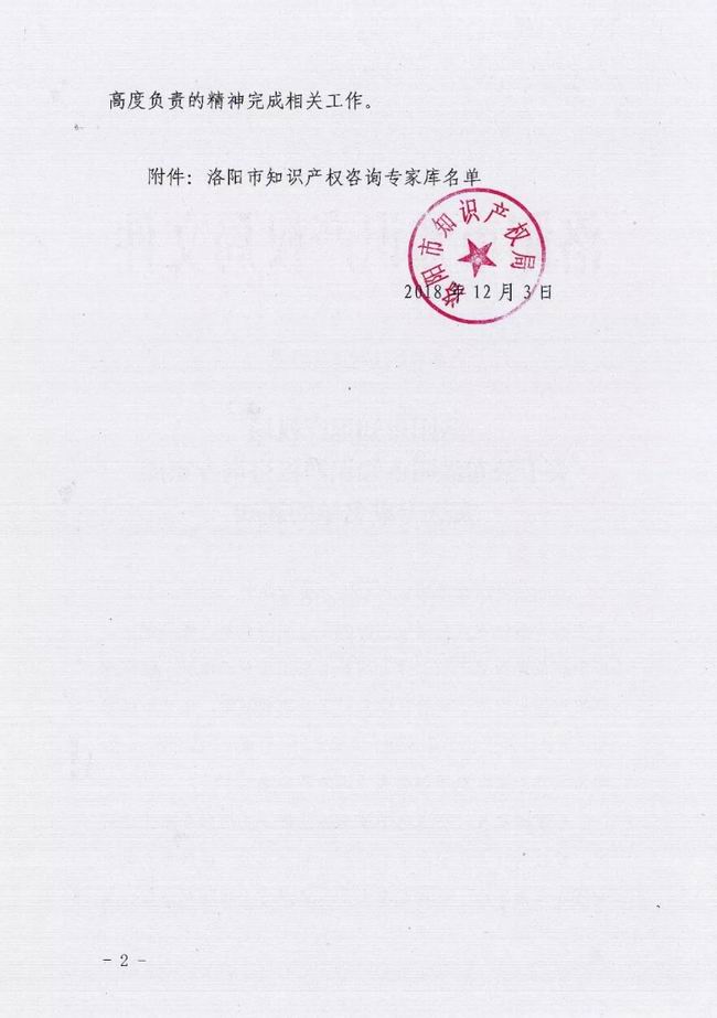 根据洛阳市知识产权局于2018年12月3日发布的《洛阳市知识产权局关于公布洛阳市知识产权咨询专家库入选专家名单的通知》(洛市知【2018】33号),中机洛阳精密装备科技股份有限公司总经理王景夏先生,入选为专家库成员。